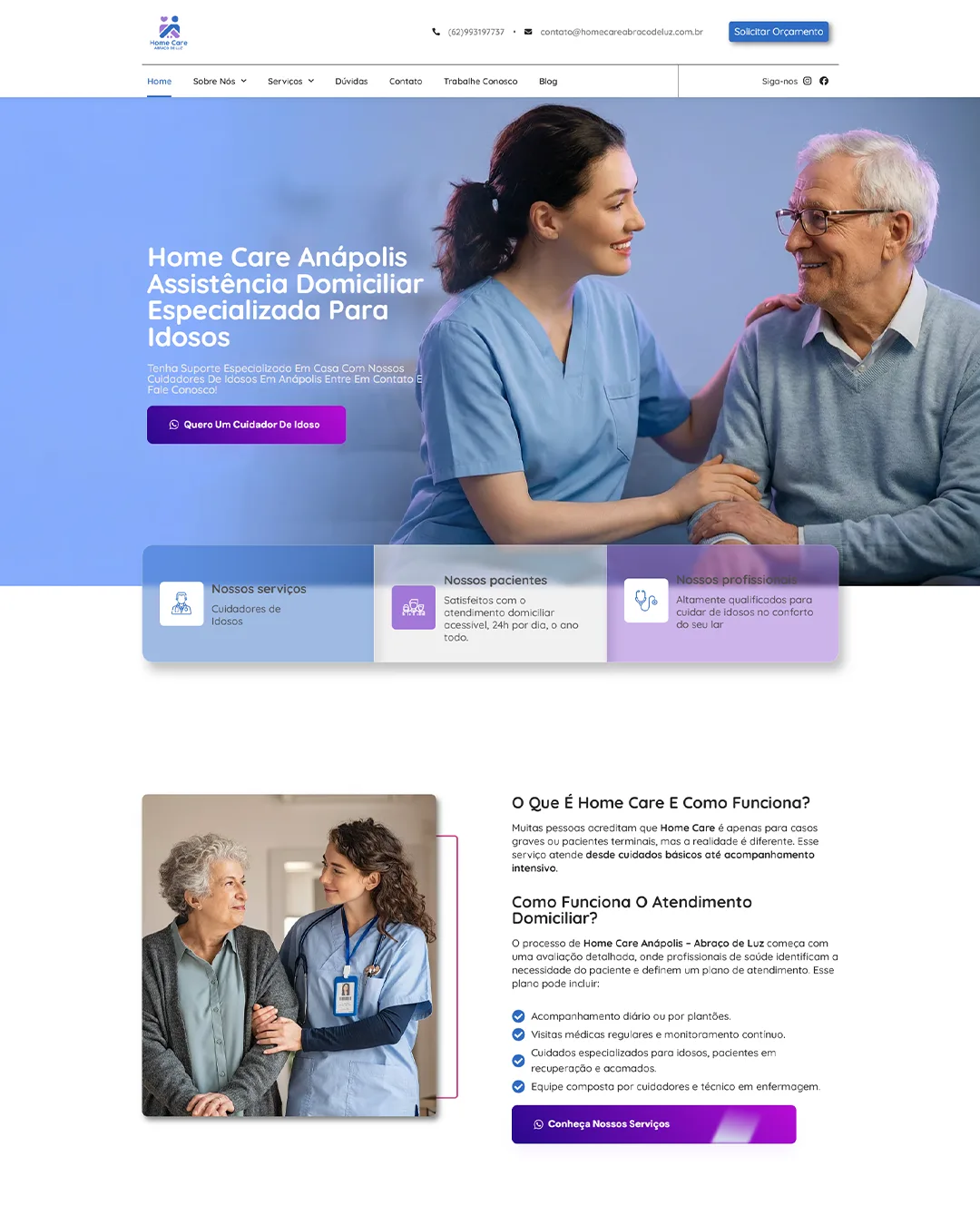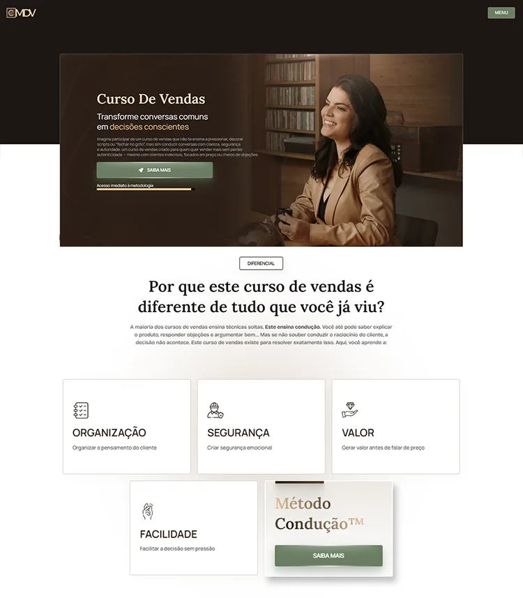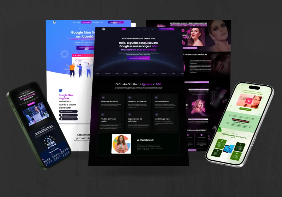 Site/landing page totalmente personalizado conforme sua identidade visual, pensado em posicionamento no Google.