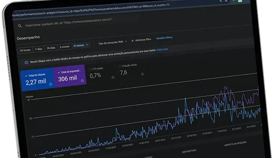 Integramos desenvolvimento, SEO técnico, presença local e otimização para IAs em uma única estratégia, pensada para gerar performance, posicionamento orgânico no Google e crescimento sustentável